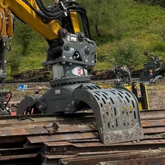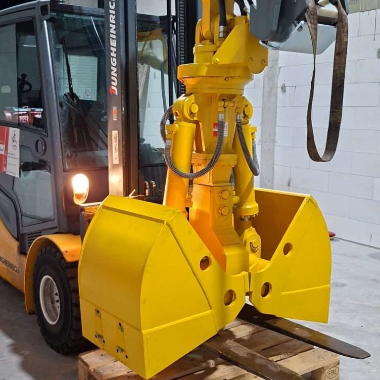 30er Schwellenfachgreifer, 80er Schalengreifer und Grabenräumlöffel .